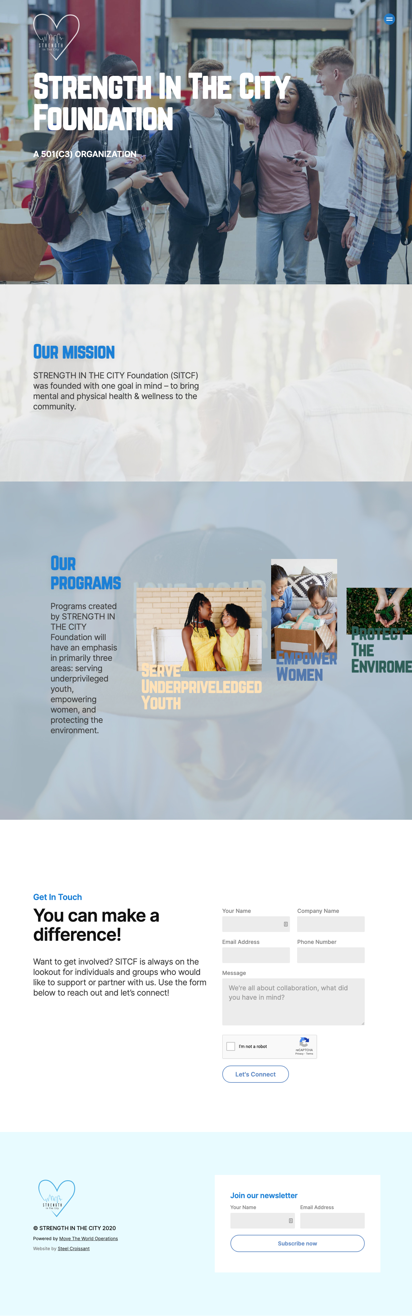 Homade teamed up with Steel Croissant to build a new online footprint for STRENGTH IN THE CITY Foundation – to bring mental and physical health & wellness to the community. Their website needed to communicate their core values and demographics quickly and fit into the larger STRENGTH ecosytem.